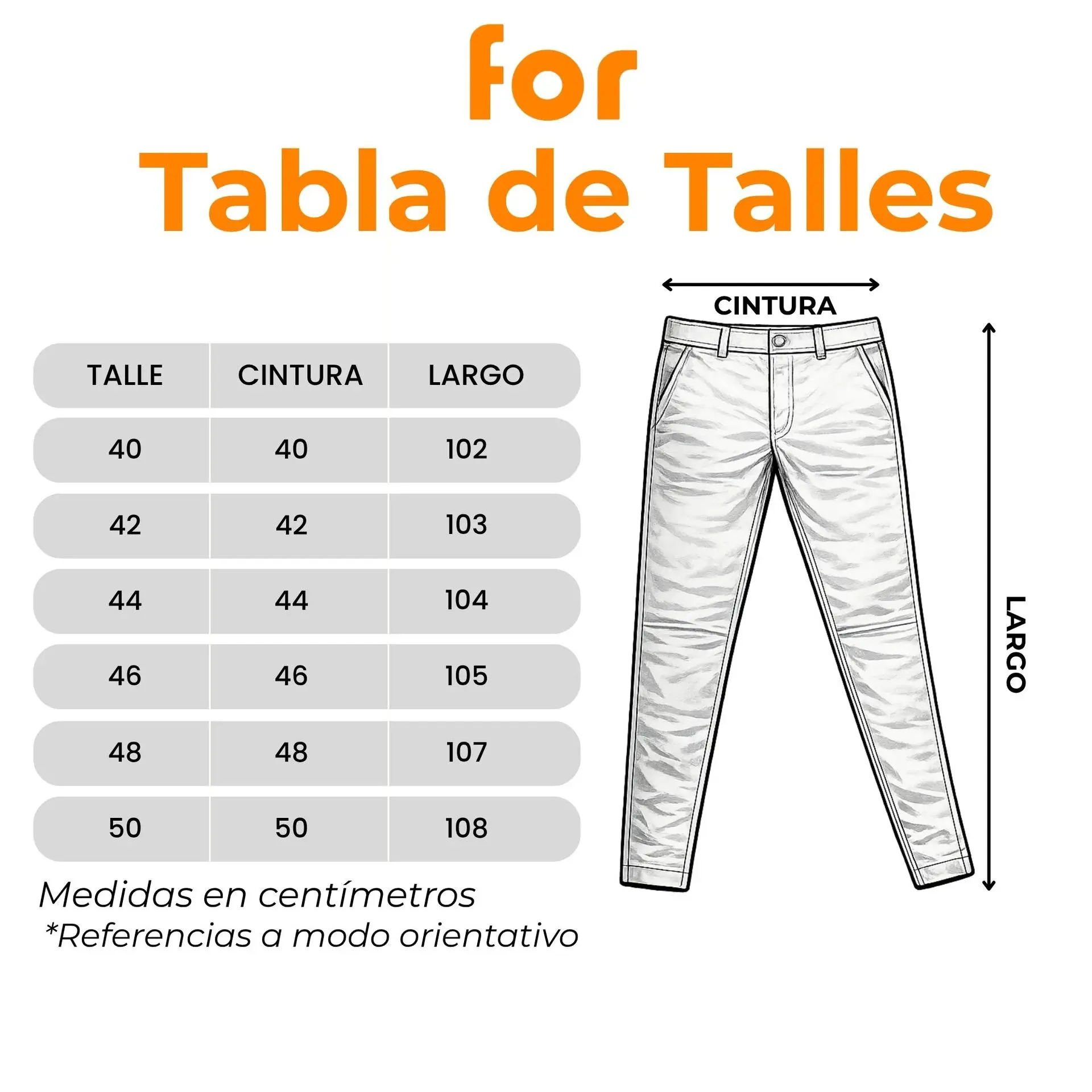 ¿Cómo medir?: Tome un pantalón que le quede bien y mídale la cintura y el largo de la misma manera que se muestra en la imagen. La cintura se mide solo de la parte del frente de la prenda, no todo alrededor. Si desea comparar la medida de la cintura del pantalón con la de su cintura, simplemente multiplique la primera por dos. El largo se mide de forma recta desde el lateral superior hasta la botamanga.
