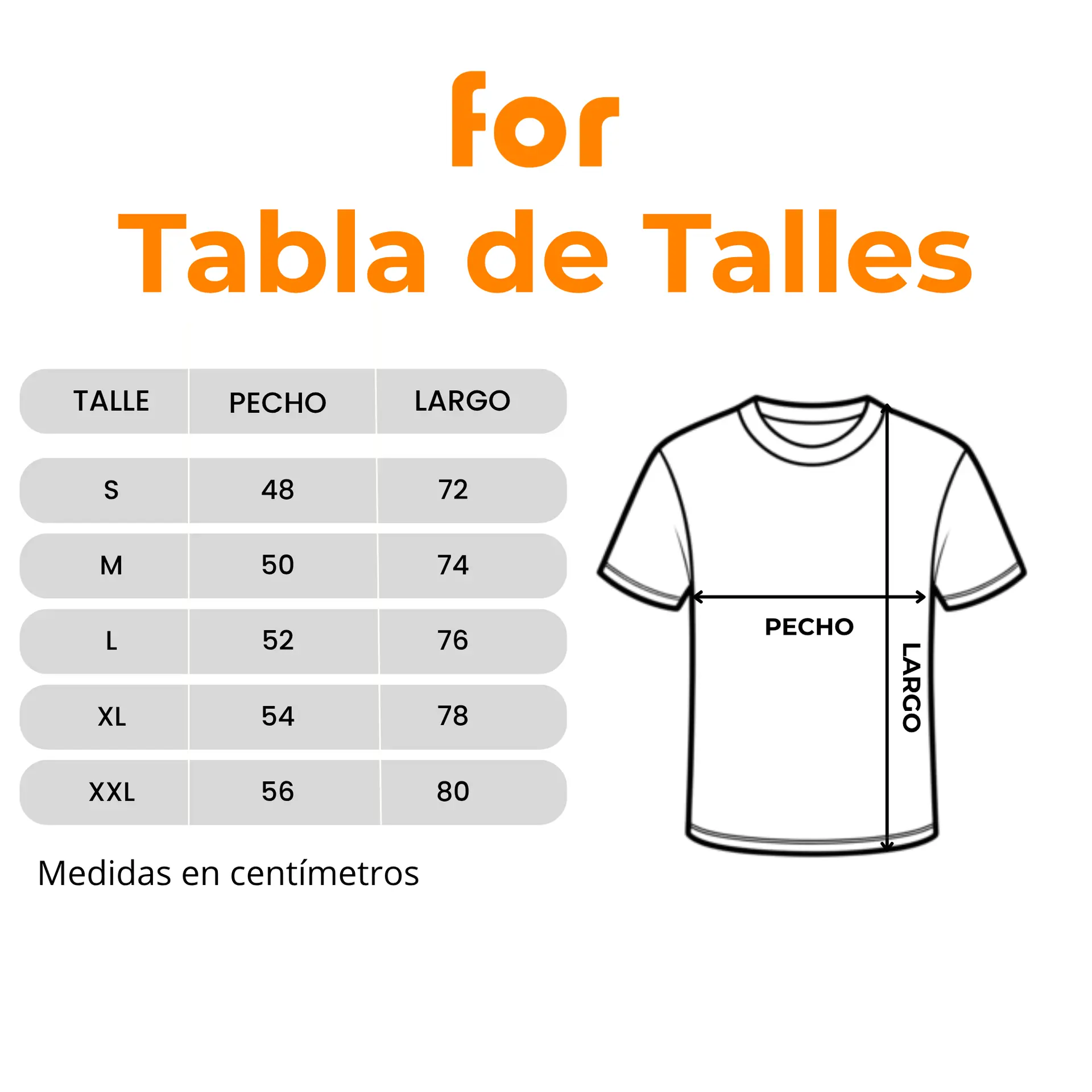 ¿Cómo medir?: Tome una remera que le quede bien y mídale el pecho (sisa) y el largo de la misma manera que se muestra en la imagen. El pecho se mide desde la zona de la axila donde se unen el cuerpo de la prenda y la manga hasta la otra. El largo se mide de forma recta desde el borde del cuello hasta la parte inferior de la prenda.